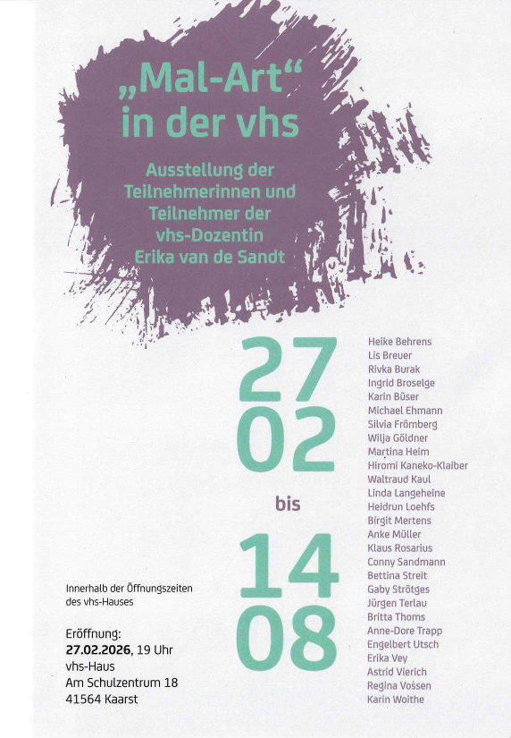 | 27.02.2026 – 14.08.2026 | Mal-Art VHS Kaarst |